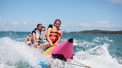 "Banana Boat dan beberapa aktivitas watersport seru lainnya di Pantai Tanjung Benoa, Bali"